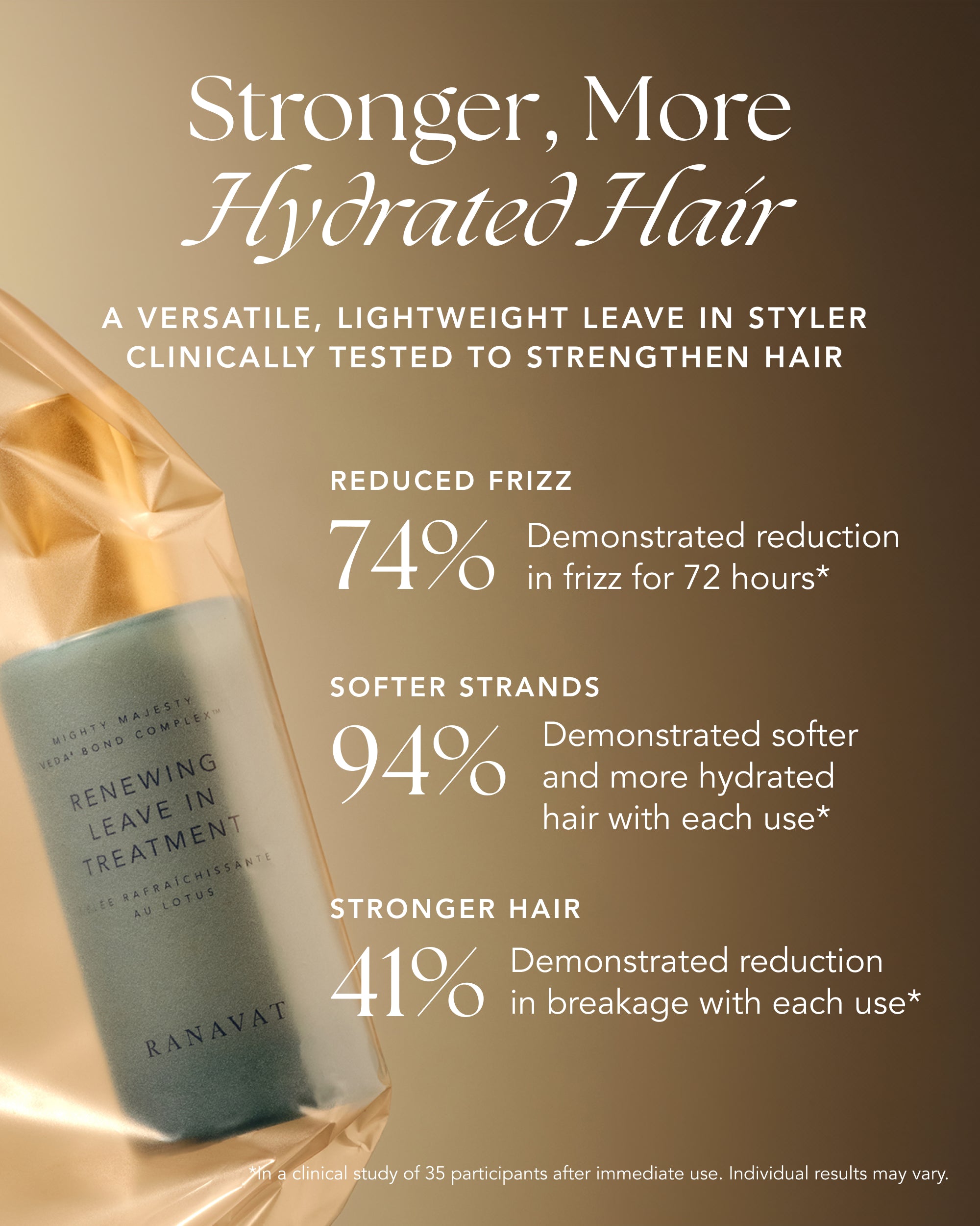 濕髮或乾髮適用的免沖洗護髮精華,質地輕盈,經臨床測試,有助於持久強韌秀髮,提升保濕效果,溫和順滑,減少毛躁長達72小時,有效抗熱及對抗造型傷害。蘊含訶子和胡蘆巴成分,有助於滋潤秀髮,增強彈性和韌性。適合所有髮質,特別推薦給乾燥、毛躁、染燙受損、頻繁造型者使用。